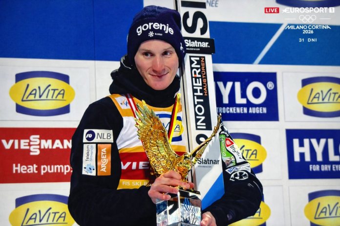 Domen Prevc zdobył Złotego Orła, dwukrotnie triumfując i dwukrotnie zajmując drugie miejsce w 74. Turnieju Czterech Skoczni. Słoweniec pozostaje też liderem klasyfikacji generalnej Pucharu Świata 2025/26 przed Ryoyu Kobayashim i Renem Nikaido. Maciej Kot, Kamil Stoch i Kacper Tomasiak spisali się dziś solidnie, dając powody do optymizmu przed nadchodzącymi startami.